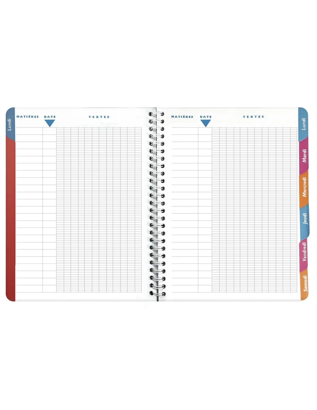 - Couverture cartonnée imprimée, toucher doux avec des zones de vernis brillant 3D, reliure spiralée. Ouverture pratique à plat et à 360 degrés.
