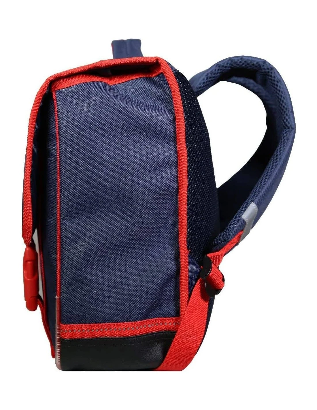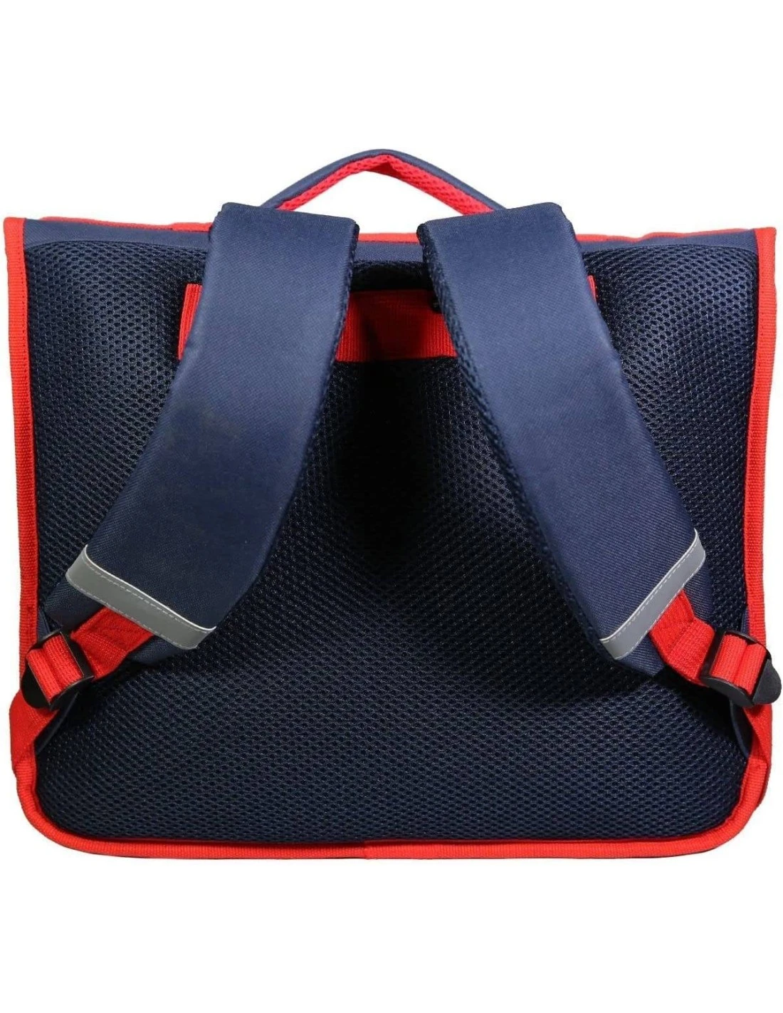 Ses dimensions de 38cm de long, 14cm de large et 34cm de haut sont adaptées pour les classes de primaire. Coloris rouge et bleu. 100% polyester. Des bandes réfléchissantes assurent la visibilité de votre enfant sur le chemin de l’école.