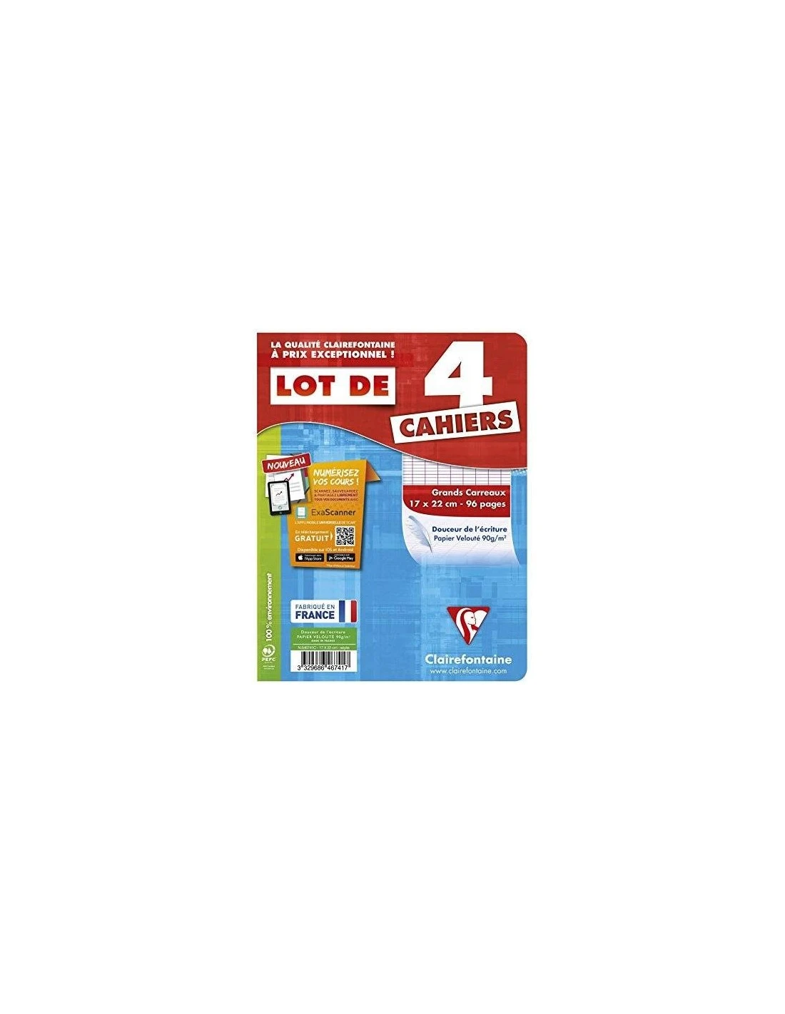 Clairefontaine – Lot de 4 Cahiers Piqué – Grands Carreaux – 96 Pages – 17 x 22 cm