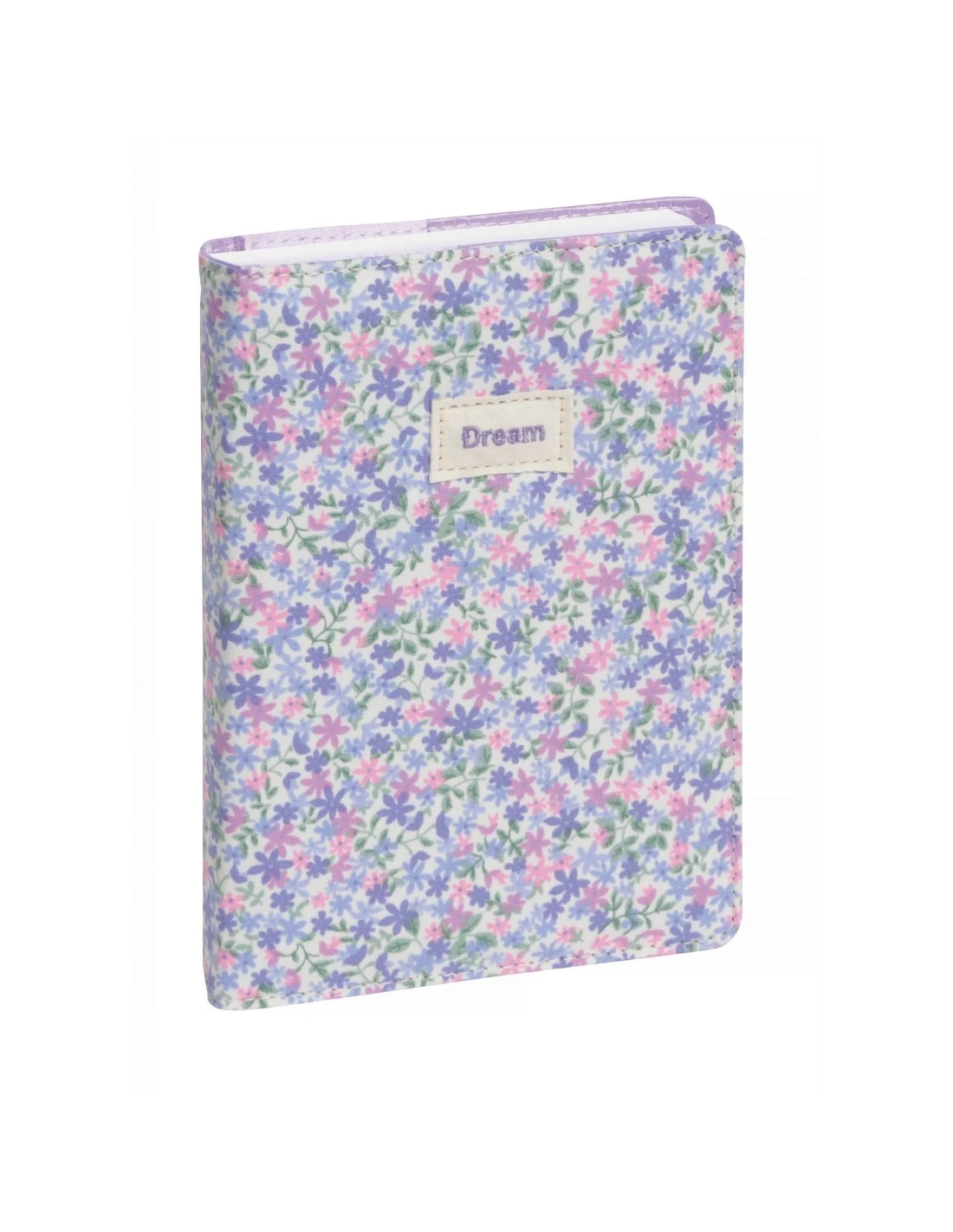 - Couverture amovible textile imprimé de petites fleurs. Reliure brochée cousue pour une plus grande solidité.