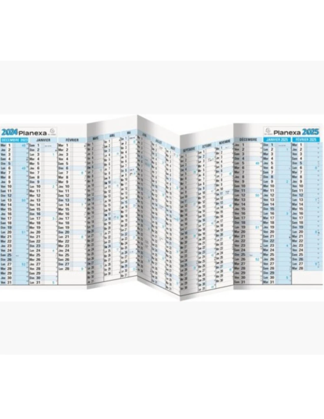 Le Planexa 5 Volets est un calendrier mural robuste et pratique, couvrant la période de décembre 2024 à février 2026. Sa conception en cinq volets permet une visualisation claire et organisée de vos rendez-vous, projets, et échéances. Ce calendrier est parfait pour une planification détaillée et une gestion du temps optimale, offrant suffisamment d’espace pour noter toutes vos activités.