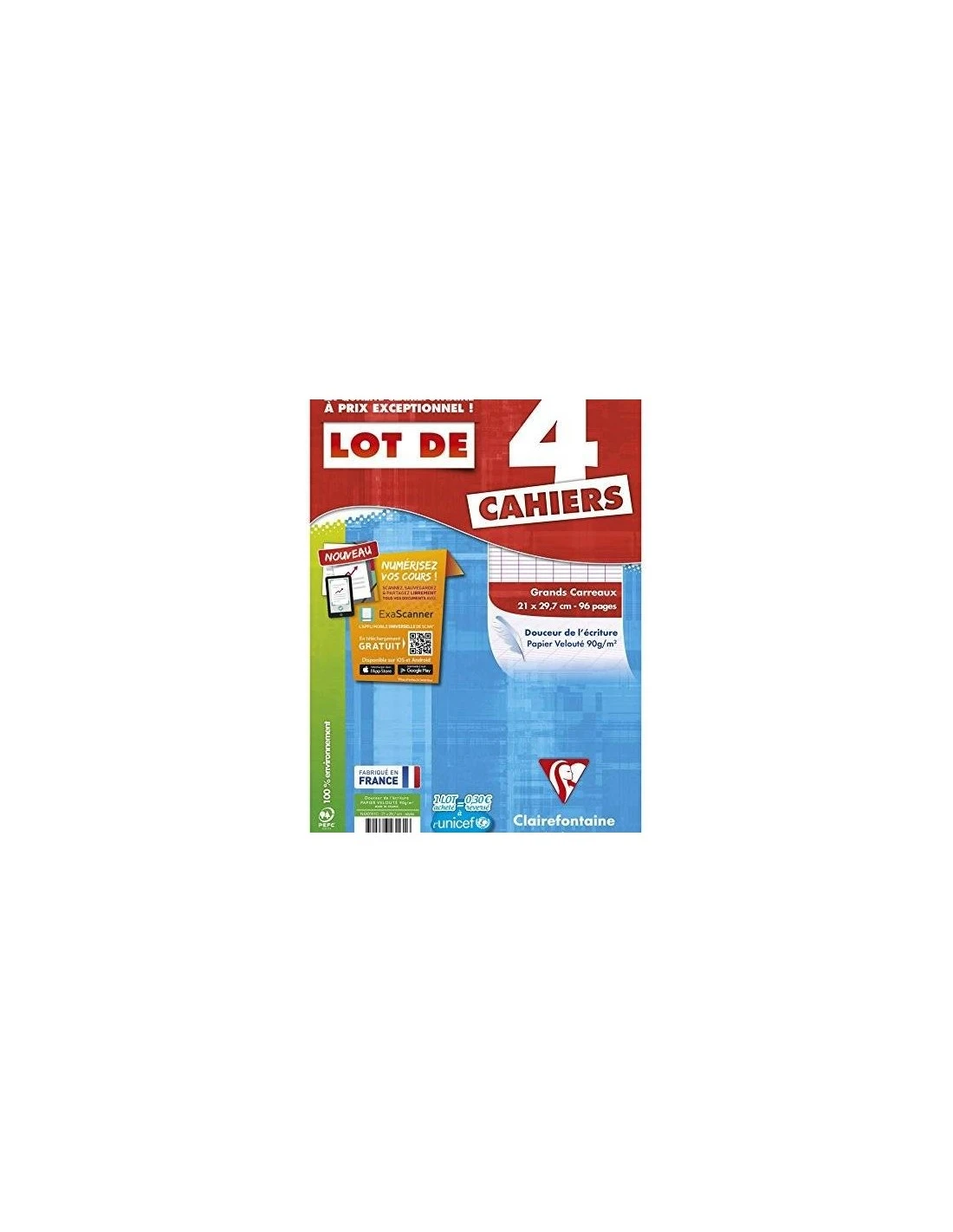 Clairefontaine – Lot de 4 Cahiers Piqué – Grand Carreaux – 96 Pages – 21 x 29.7 cm