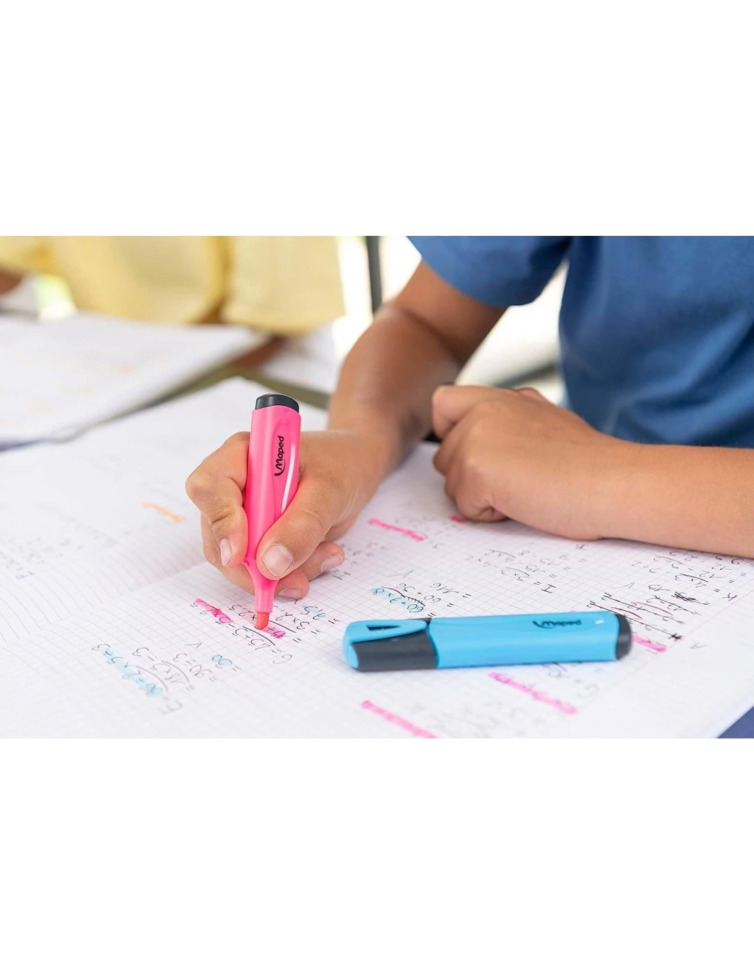 - DES SURLIGNEURS LONGUE DURÉE : Parce que la qualité d’un surligneur ne se mesure pas uniquement à la brillance de ses couleurs, Maped a mis tout son savoir-faire pour élaborer des surligneurs efficaces dans le temps. Les surligneurs fluos sont pourvus de bouchons qui tiennent solidement au stylo. Ils ne s’ouvriront pas tout seuls, et ne sècheront pas même si le capuchon n’est pas remis immédiatement (jusqu’à 4 h)