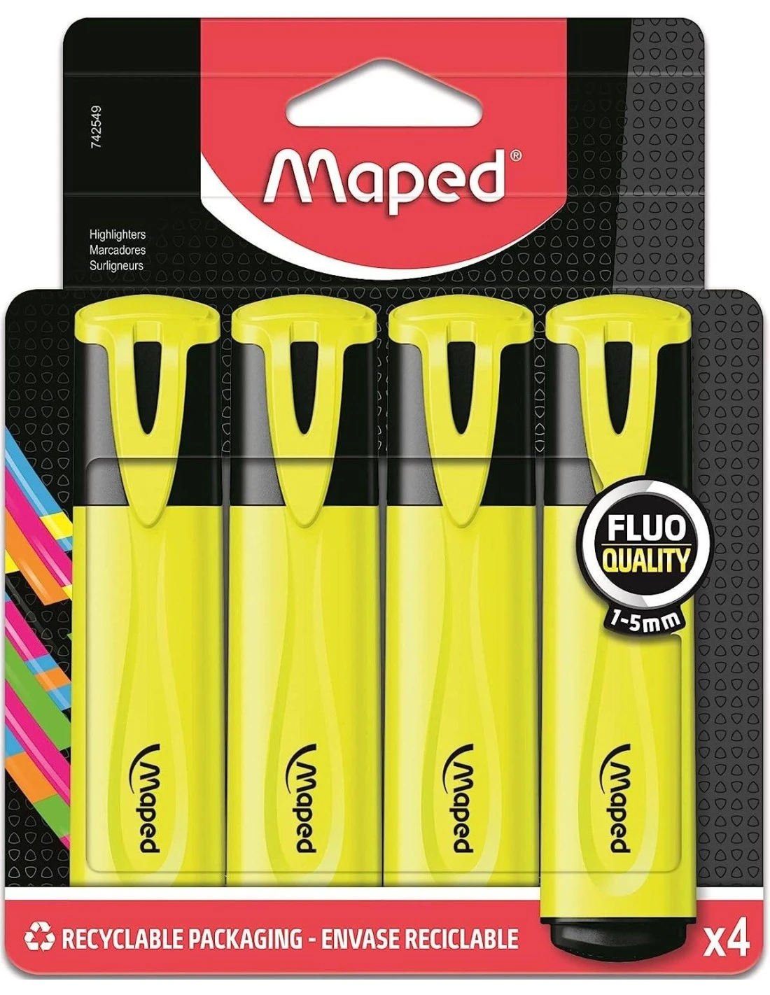 - Le pack carton de 4 surligneurs Maped vous permet, à la maison, au travail ou à l’école, de mettre en valeur tous vos documents