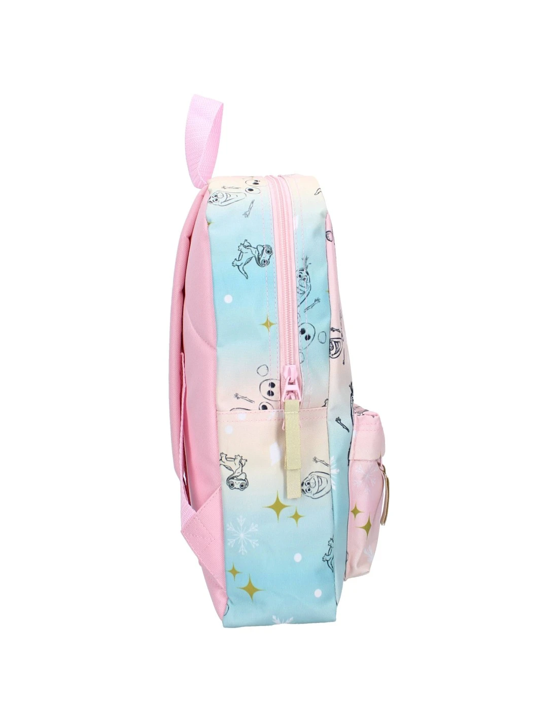 Le sac à dos est orné d’une magnifique illustration d’Elsa dans un cadre enchanteur, entourée de motifs et de flocons de neige scintillants.