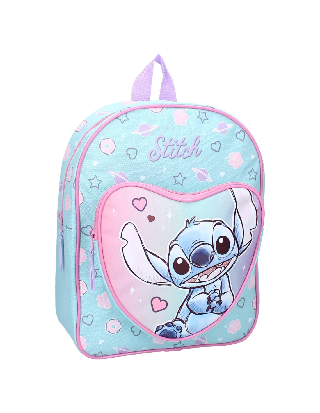 Vous avez chez vous ce sac à dos Stitch de la collection Hello Cutie ? Votre enfant voudra sans doute l’emporter partout ! C’est bien sûr grâce à Stitch et Angel, qui apparaissent sur le devant de ce sac à dos. L’extraterrestre fou a l’air heureux et affiche un grand sourire contagieux. Il se détache magnifiquement sur le sac rose et vole la vedette. Le sac est orné de détails bleus/violets, notamment au niveau de la fermeture éclair, de la boucle de transport et des bretelles. Ces confortables bretelles sont également réglables.