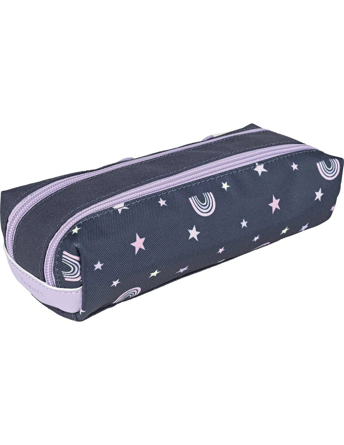 Pour parfaire ce modèle un joli motif mêlant étoiles et arc-en-ciel vient habiller un côté de la trousse. Matière éco-responsable: cette trousse est fabriquée à partir d’un polyester de haute qualité issu de bouteilles plastiques recyclées.