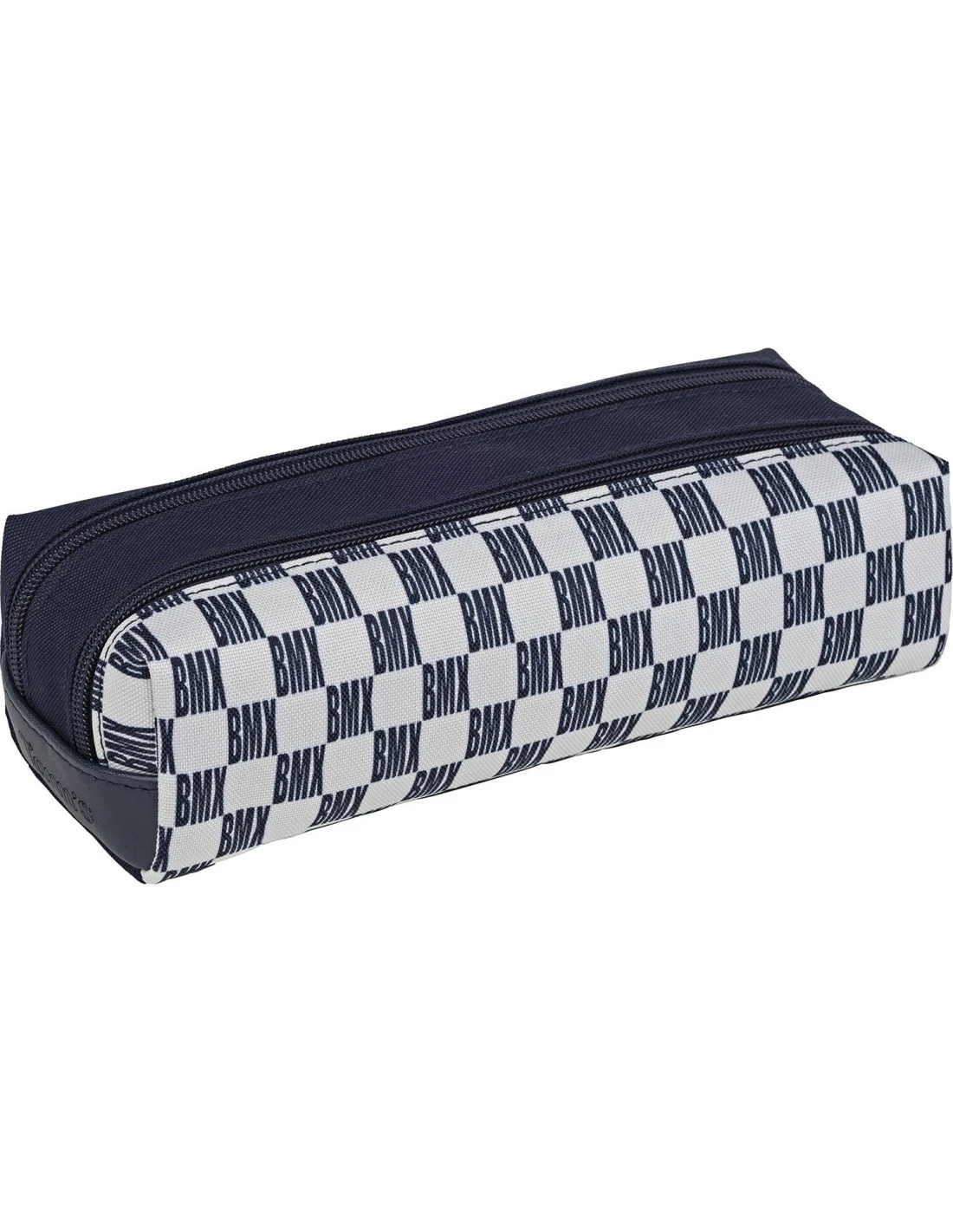 Habillée d’un motif damiers trompe-l’œil créé avec l’inscription BMX ainsi que de pachs et de broderies, cette trousse suivra les enfants de l’école jusqu’à leurs pistes préférées !