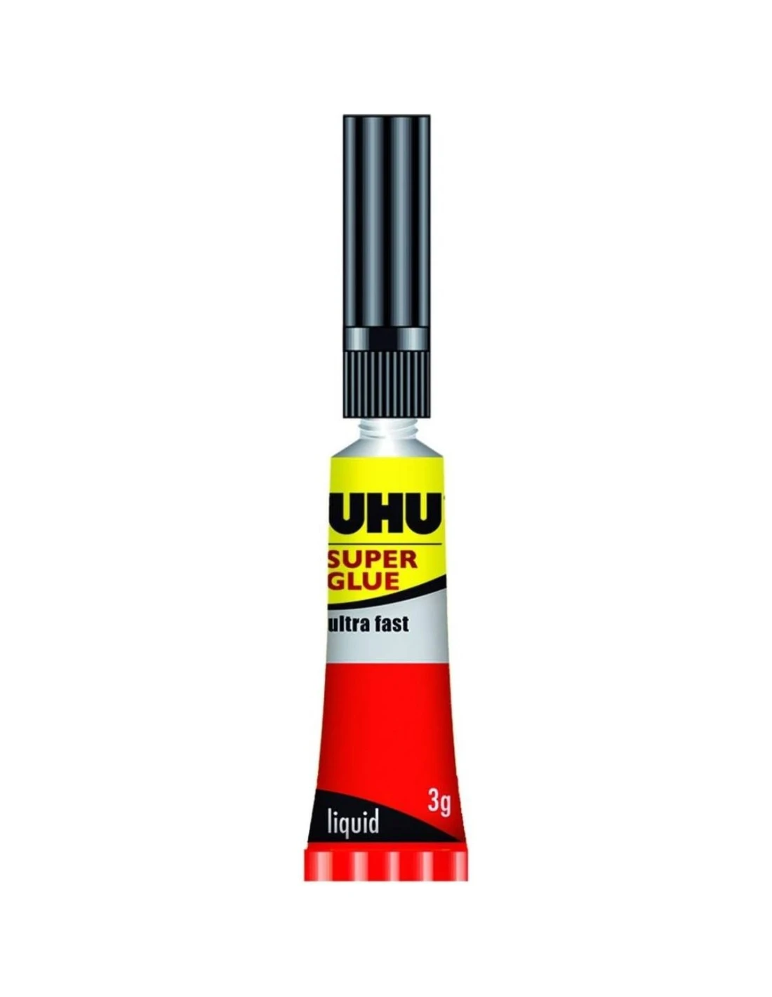 - Fort de ce constat, UHU a élaboré Power glue: une super glue qui ne coule jamais grâce à sa formule et/ou son tube!