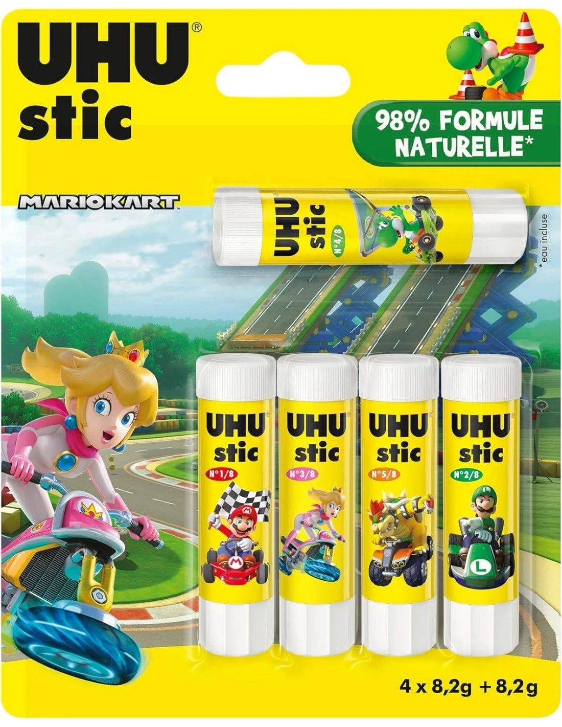 Le lot de 5 bâtons de colle UHU Stic Mario Kart est un excellent cadeau pour encourager la créativité des enfants. Avec leurs designs amusants, ils rendent les activités manuelles encore plus attrayantes.